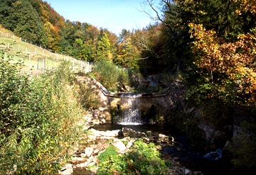 丘陵地から市街地に流れ込むあたりでは、河床勾配が急になるために床固工群と呼べるものが配置されている。石積みで高さもさほど高くないことから、それはそれで風格がある。